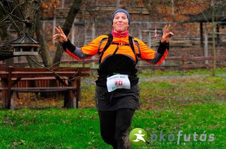 A csúcsig olyan tempóban haladtunk, hogy két emberrel is megismerkedtem, Henivel és Lacival. A csúcsig háromszor spárgáztam a talajviszonyok miatt (agyagos sár + avar + kövek), de ügyesen estem, komoly bajom nem lett, még zúzódásom sem. A tetőn várt Pepe, mondja, hogy a fiam már elhúzott rég, szaladtam utána. Lefelé repesztettem a sáros avarban, az egyensúlyozás jól megy, valami haszna csak volt a sok jógának. Végre elértem a kosdi elágazáshoz. Várnak a lányok, a kosdi önkéntesek, mondják nekem, hogy “Szilvike, a kisfiad már fél órája elment!” .. jól van, jól van , szaladok, csak kérek még egy kis banánt meg kólát, és már itt se vagyok. Fotózkodtunk egy sort, aztán usgyi.A gyadai réten sokan lehagytak, a gyorsabb középtávosok, a még gyorsabb hosszútávosok, akik addigra értek utol.