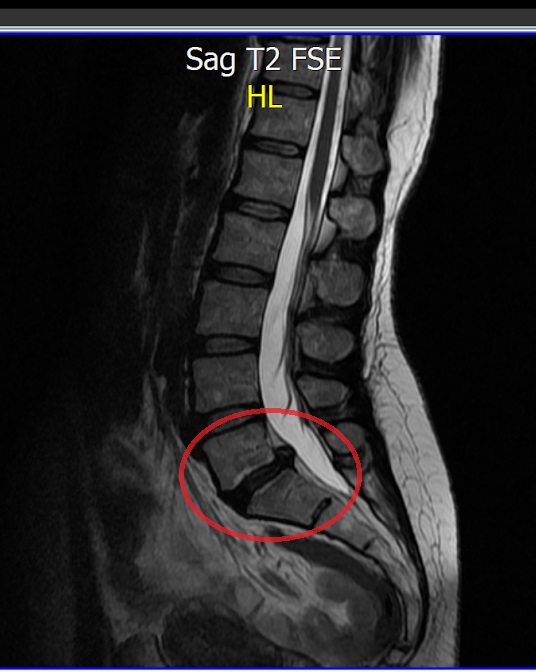 A leletem szerint van némi esély csigolyacsúszásra is, (spondylolisthesis), viszont ami jó hír, hogy viszonylag középen maradt.